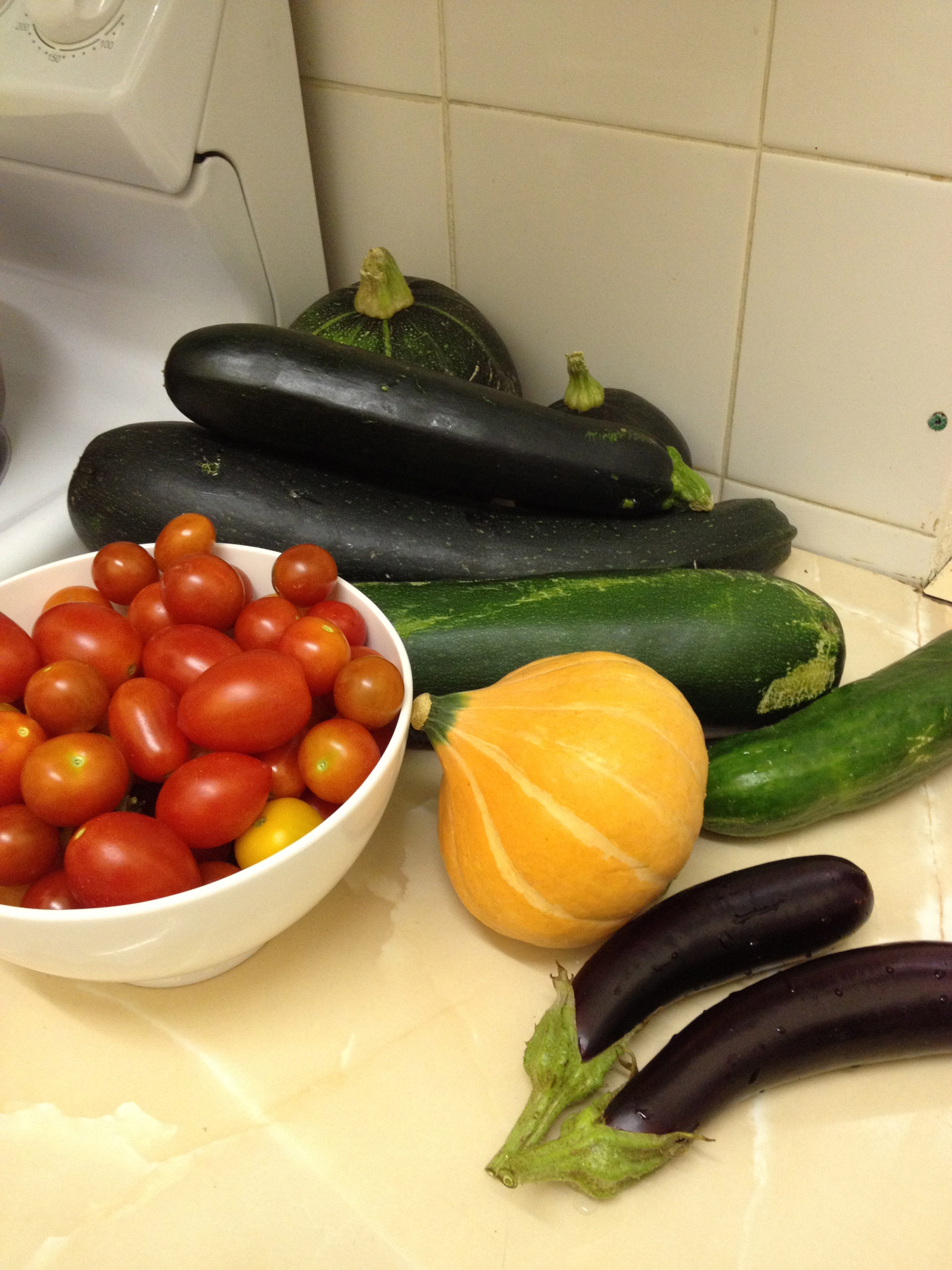 Faced with a mini glut (well, more than my immediate neighbours and I could eat), I had a surplus of zucchinis and tomatoes. The zukes turned into pickled zucchinis and zucchini pickle. There is a subtle difference – pickled zucchinis are in a spiced vinegar and zucchini pickle is more of a curry relish. I think the latter was not my finest moment and will pluck up the courage to try one day. Perhaps when we again win the meat tray at the RSL and score some corned silverside.
