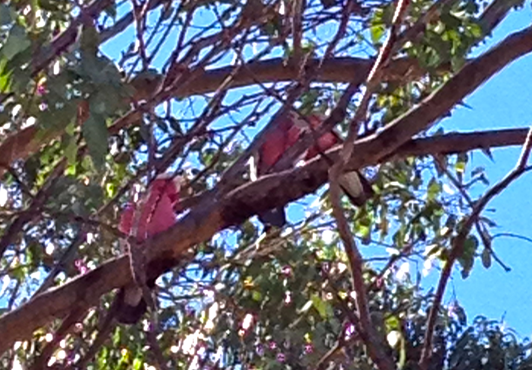 Also Galahs (I’ve had a family with babies), Rosellas, Rainbow Lorikeets, King Parrots – far more peaceful than their other parrot family members. For the first time in the wild I’ve seen the yellow tailed black cockatoos – they come out and scream across the sky with their mournful cries just before rain. I don’t know why they seem to always fly in threes – maybe they just have one chick each nesting?