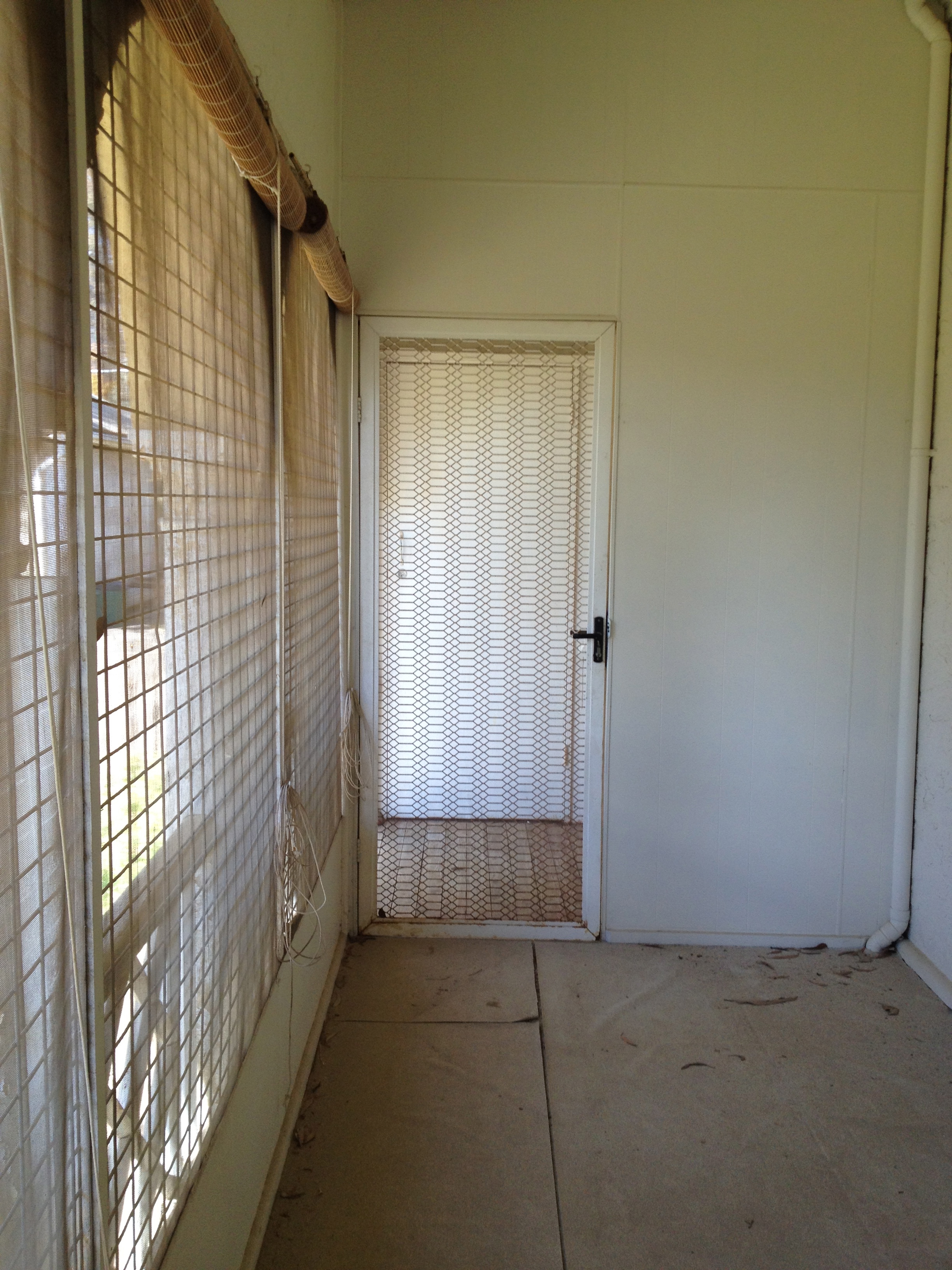 The other big advancement was the demolition of the enclosure for the back verandah, which gives me a lovely protected balcony/verandah/porch off the back bedroom and lounge with fantastic views. The original verandah was an eyesore, but this is even better than expected.
