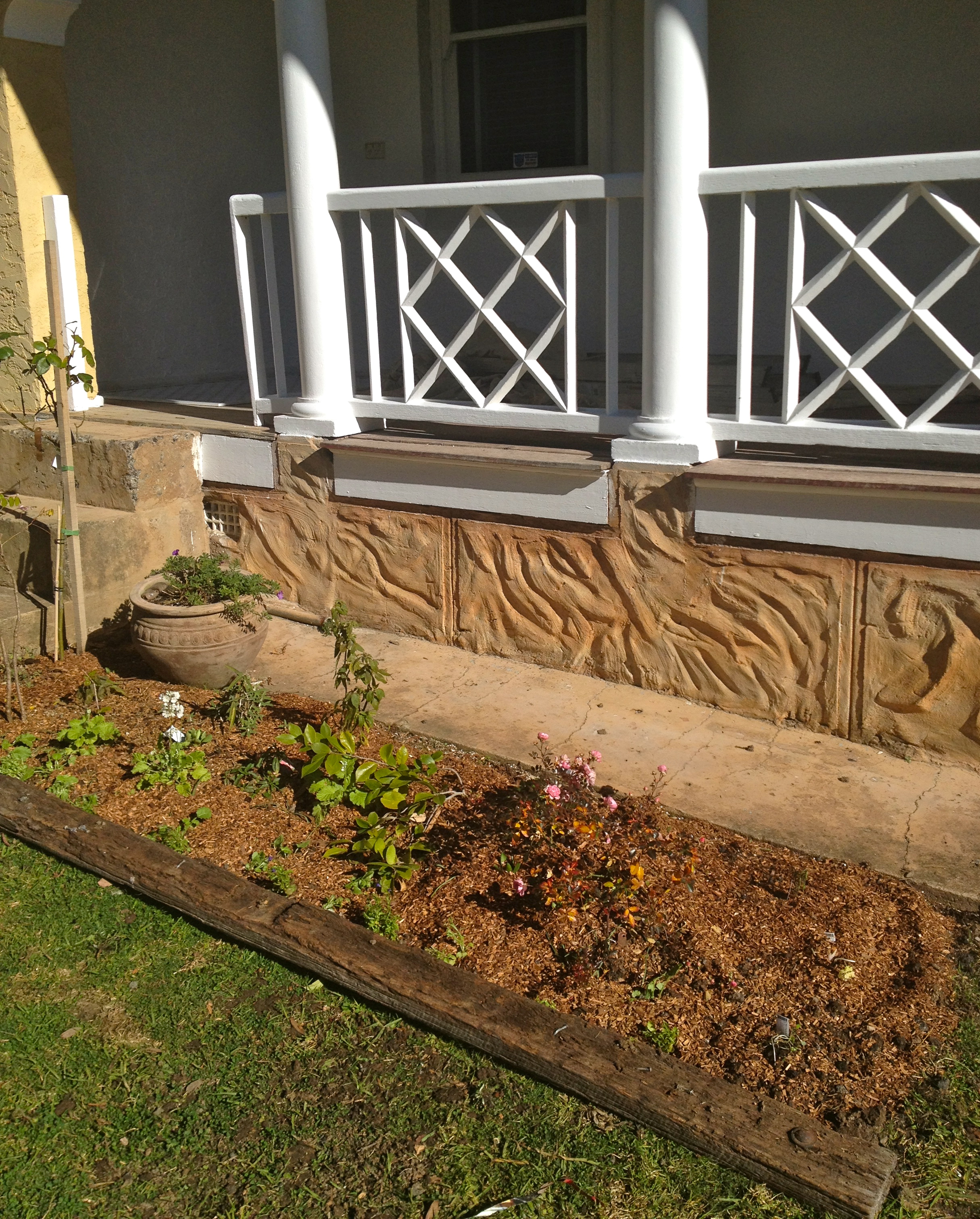 Above is what was left after a full day of planting which also included 3 mega punnets from Bunnings, a number of lovely blue Salvias and a stack of perennials which have already found their way into the side garden bed, which is looking much more organised.