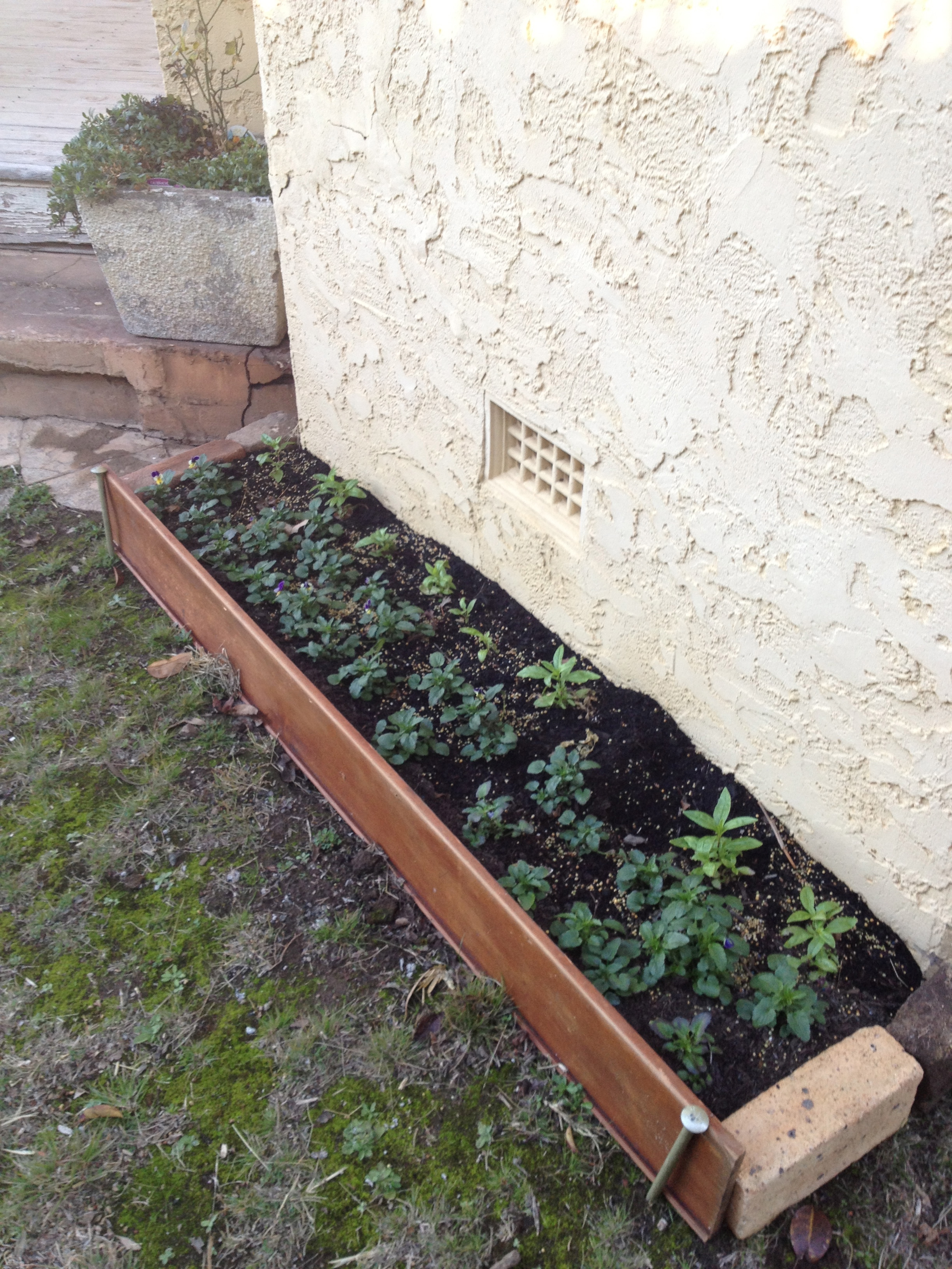My favourite reuse has been the old hardwood fence posts from the damaged section of fence that was replaced. It has already been used to expand the pumpkin patch and now to edge what was a pretty but unstructured bed near my bedroom verandah. The other posts are so heavy, I can’t budge them. They are edging the privet hedge bed for now, which required just a small nudge to get them in place. If all goes to plan and the fence is finally removed, there should be plenty of extra sleepers for both the side fence and maybe even the front wall. The wire mesh for climbers – chokos and cucumbers – was rescued from life as a grid enclosing the side verandah.