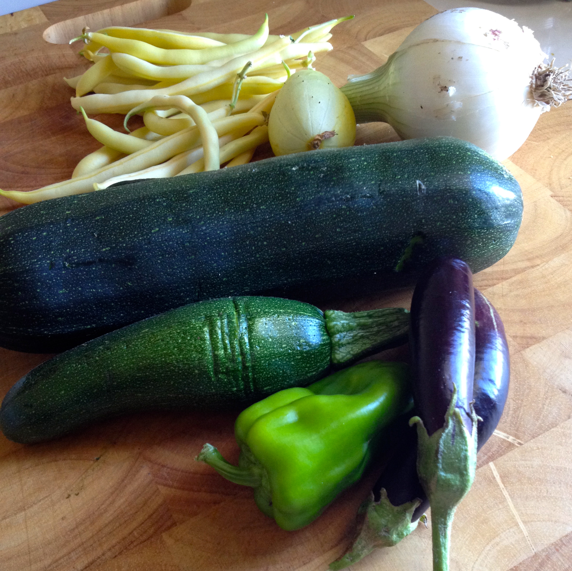 The carrots are a delight – all different colours and so perfect. The brown onions still just look like blobs at the end of the stalks, but the white onions are gorgeous and so milky juicy. My butter beans are going gangbusters – we had plenty for Christmas Day and I’m still picking and storing them. My favourite is probably the lady finger eggplants that look like black dripping jewels. The zucchini are also growing, although you need to keep an eye on these sneaky little creatures – if you miss picking them, they grow into monsters. Last night my daughter and I had ratatouille using my own onions, capsicum, zucchini and eggplant. Unfortunately I didn’t have enough tomatoes yet but it was still rewarding.