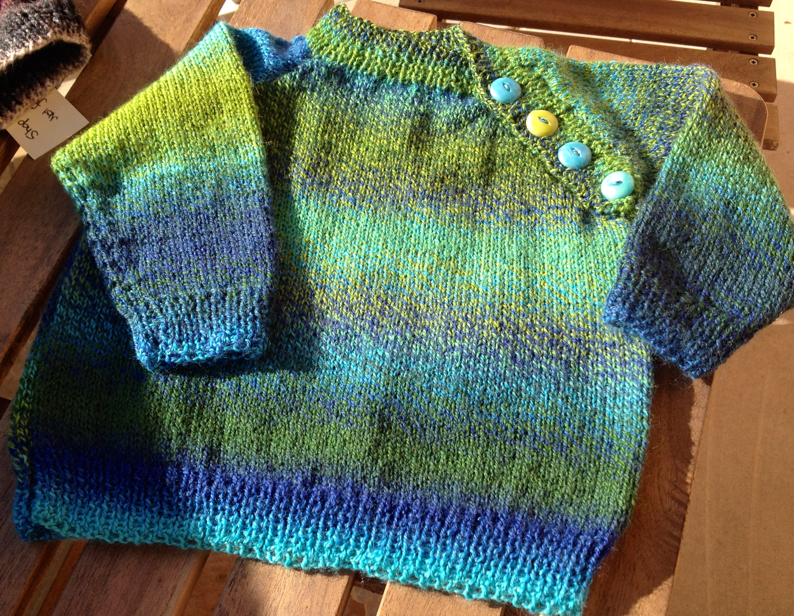 Buttons for owl eyes are optional – I put them in a few spots without becoming overwhelming. I wanted to include a few more baby/child jumper samples in the shop. Samples help knitters make decisions on what to knit and are a good way of displaying how a yarn behaves. I’m hoping these will inspire some of our customers. A smart and rewarding pattern – two are already off the needles and in the shop.
