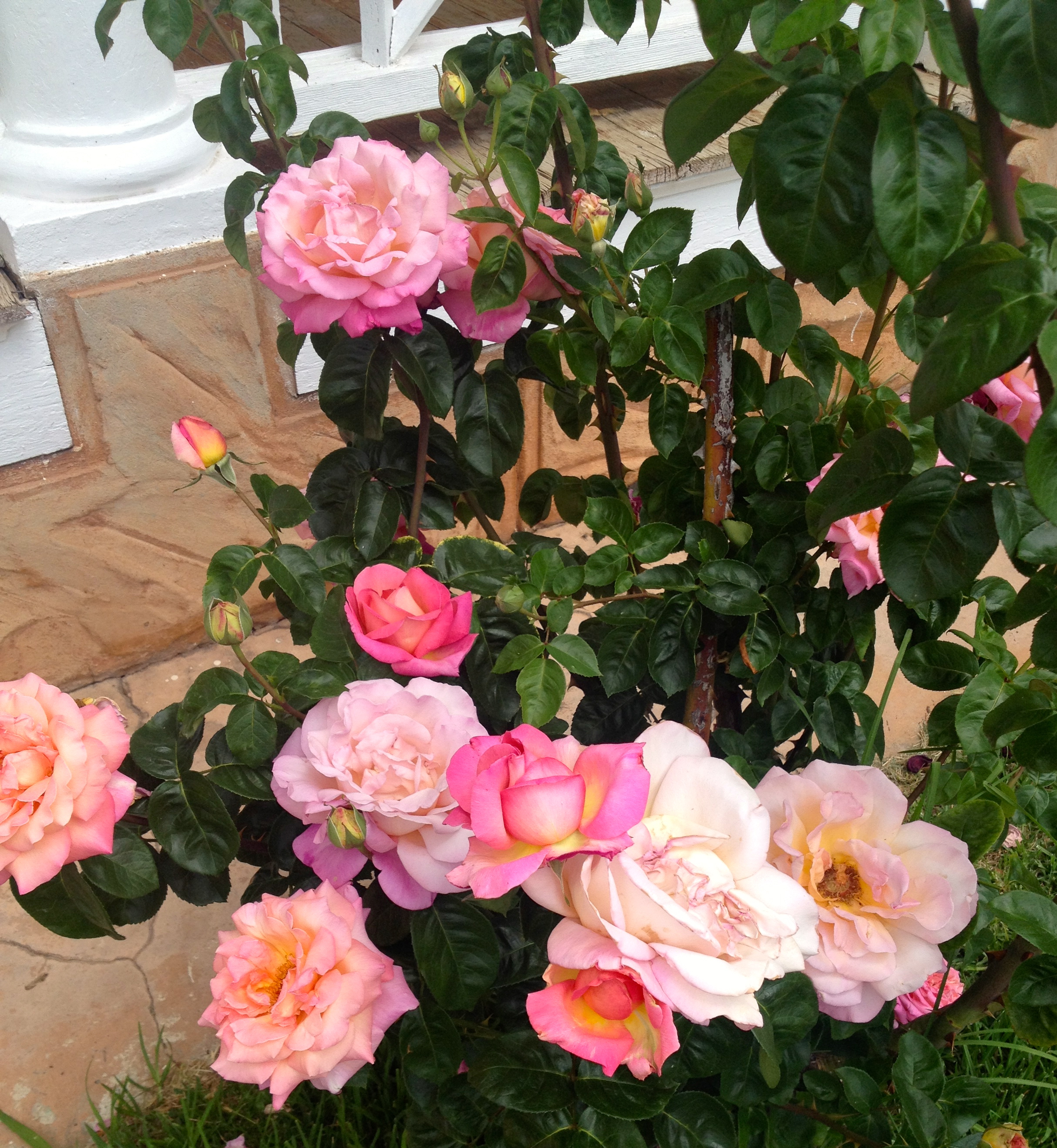 Whilst I have made some endeavours to select colours in spaces, the ‘Original Seven’ that were here were pretty random, with yellows, apricots, pinks and reds mixed, so I’m going with the flow. For other beds, I’ve been more selective – pinks, reds and whites along the front ash fence, soft pinks and whites on the Grotto and whites, yellows and apricots in the back gate bed. A few of the learnings – never get bare rooted stock. However much I promise myself I’ll plant them immediately, I don’t and I lose some. Another learning is the difference between climbers and ramblers. I have a few climbers, such as Mr Lincoln, that really need some sort of climbing frame – their strong arching branches don’t ramble softly over the wall like the other roses.