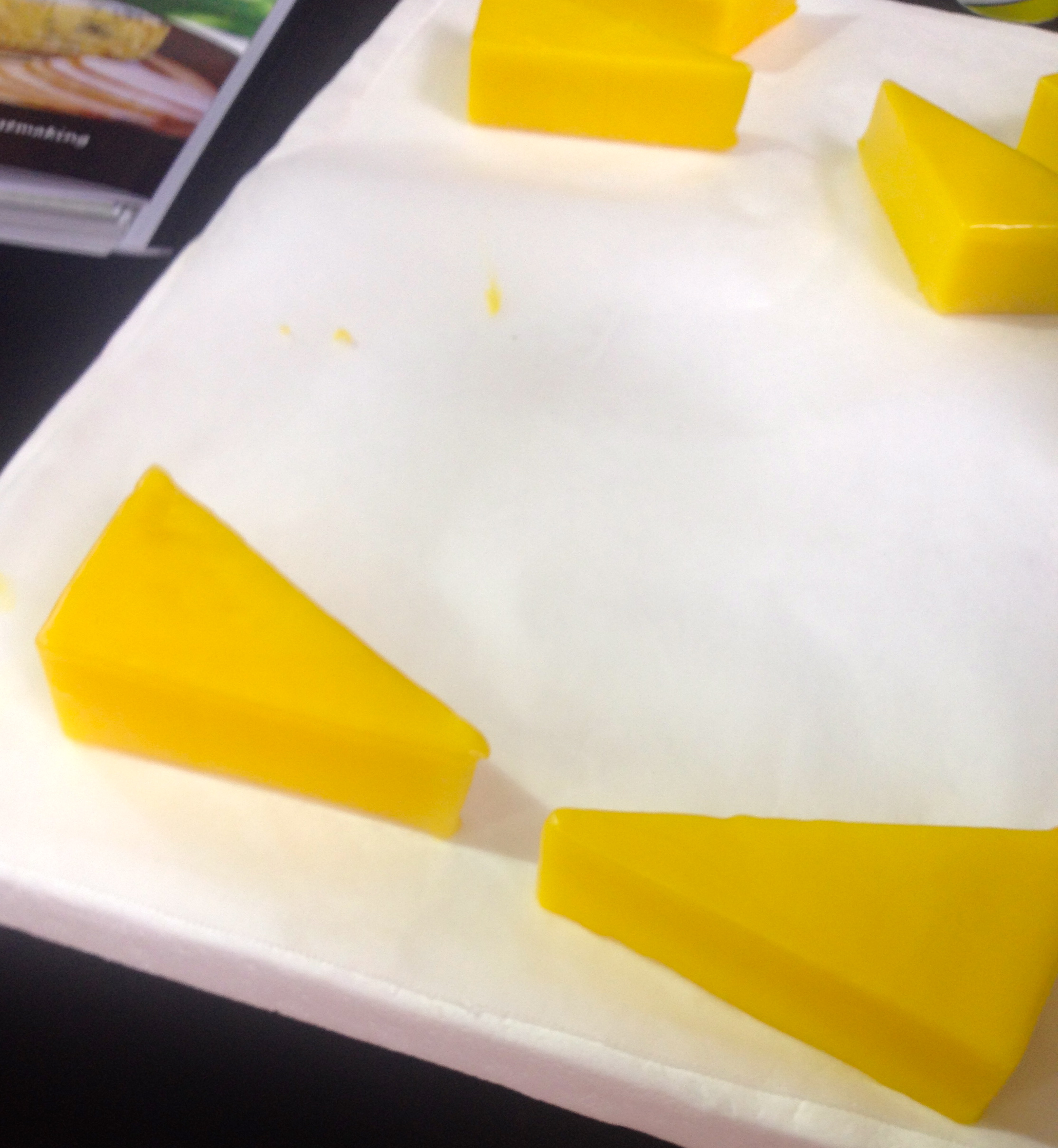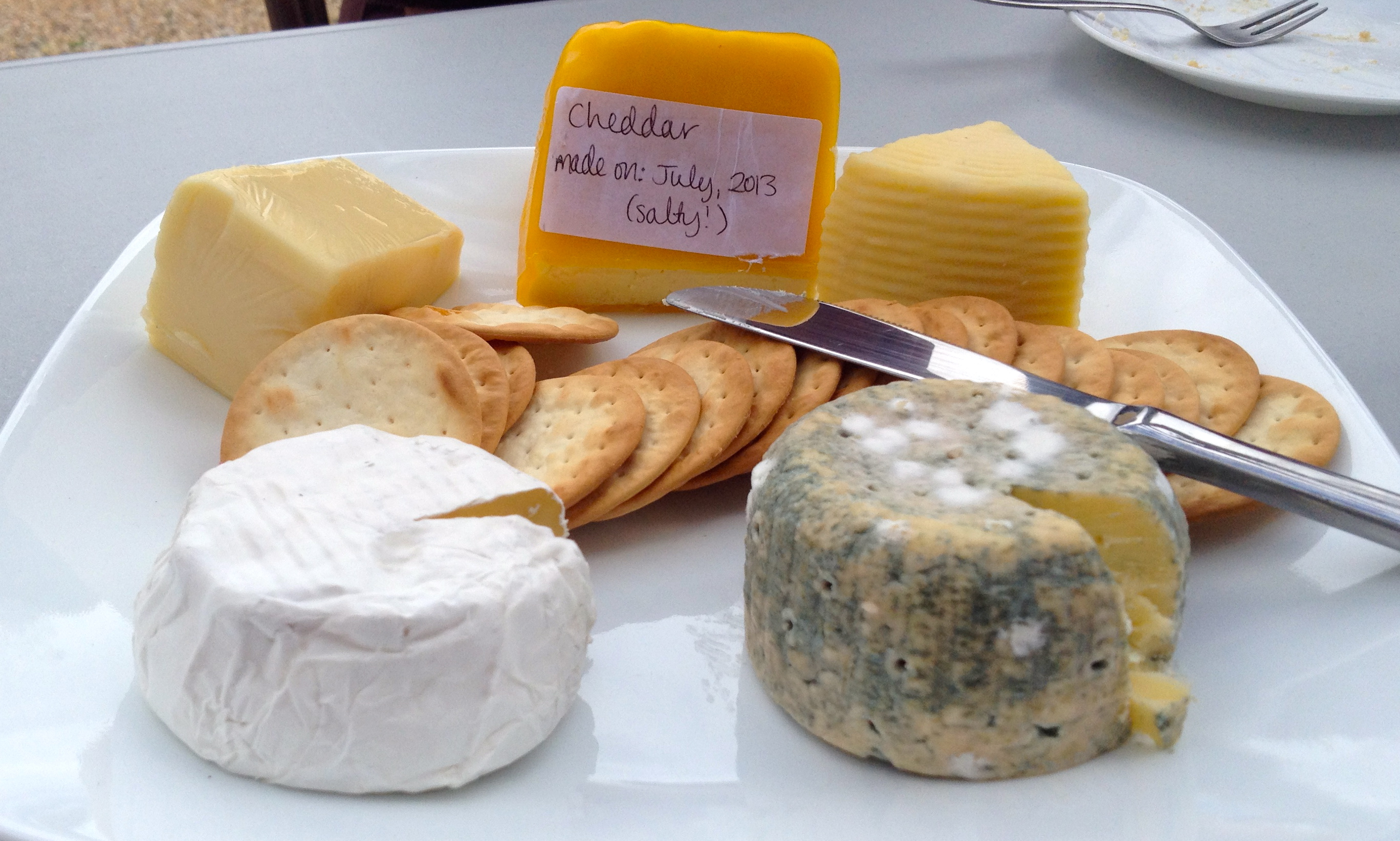 A sample plate of the cheeses we learnt at the workshop.Waxing cheddarLittle havartis that will be dried.