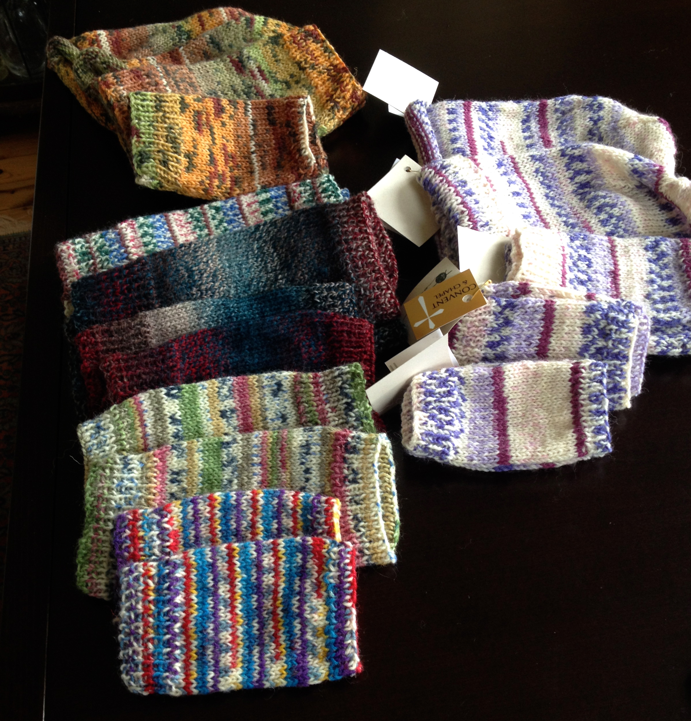 Anyway, so far I’ve managed two Adamas shawls (which were my first major attempt at following a lace shawl pattern). One is in an unashamedly bold Zauberball and another in a lovely blend of silk and merino with a fine silver filament from one of our local spinners and dyers. A Multnomah in Noro Silk Garden Sock yarn is also complete and a garter and lace shawl is nearing completion. I might add that not everyone is lucky enough to have a Chapel floor for blocking their knits!